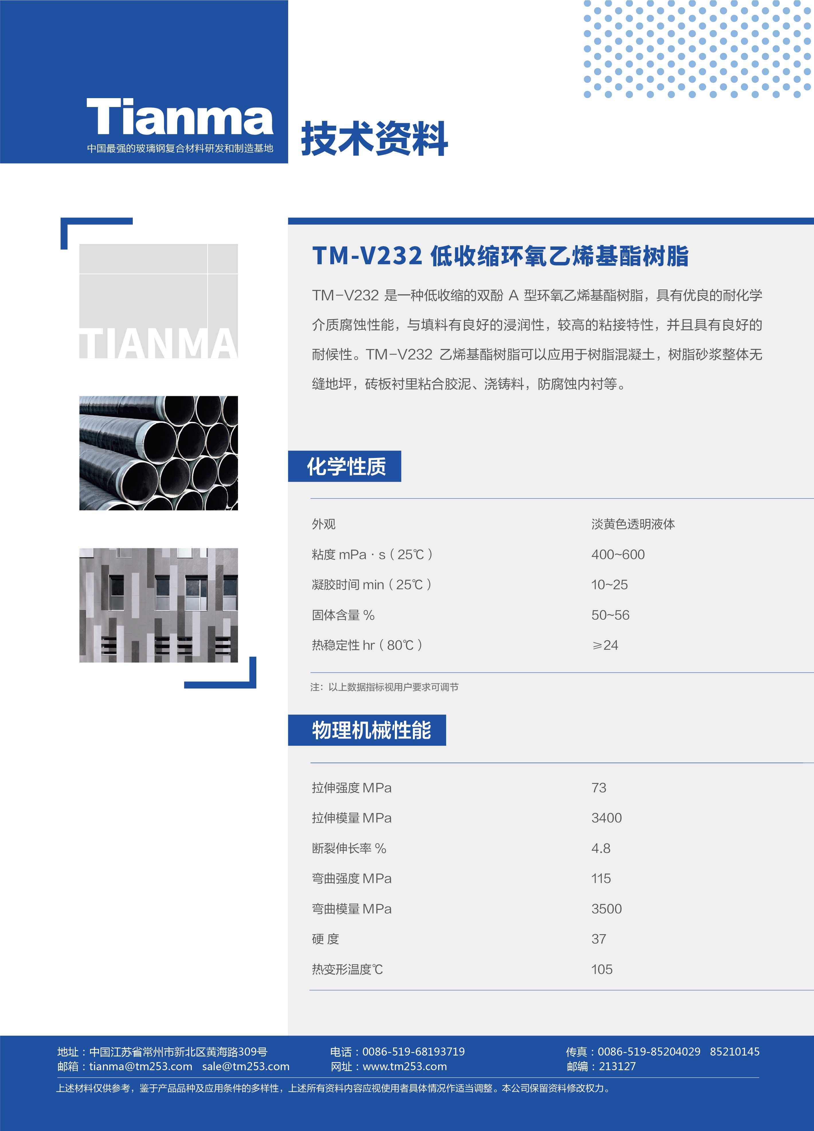 | TM-V232低收縮環(huán)氧乙烯基酯樹脂 | ||||||||||