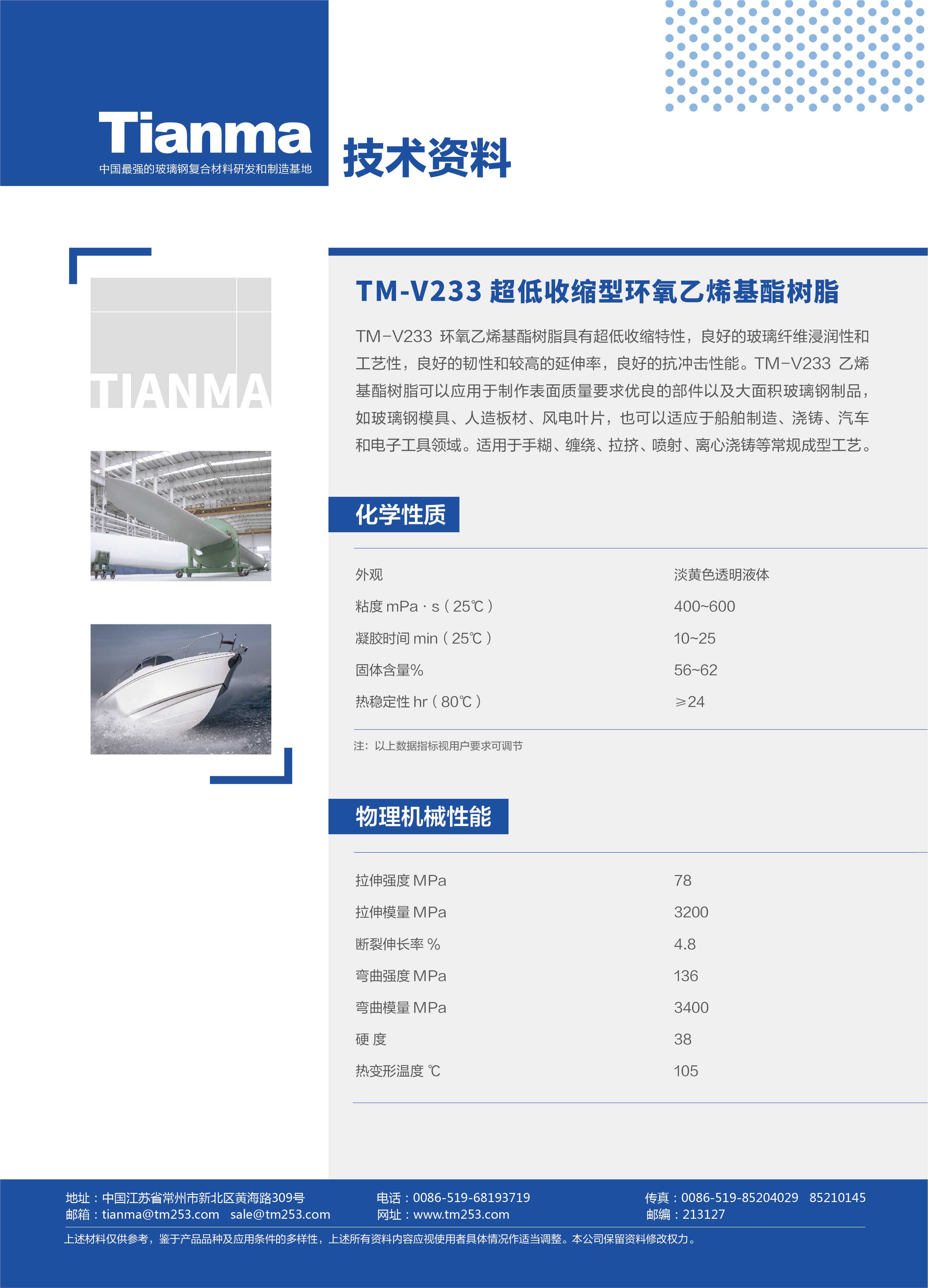 | TM-V233超低收縮環(huán)氧乙烯基酯樹脂 | ||||||||||