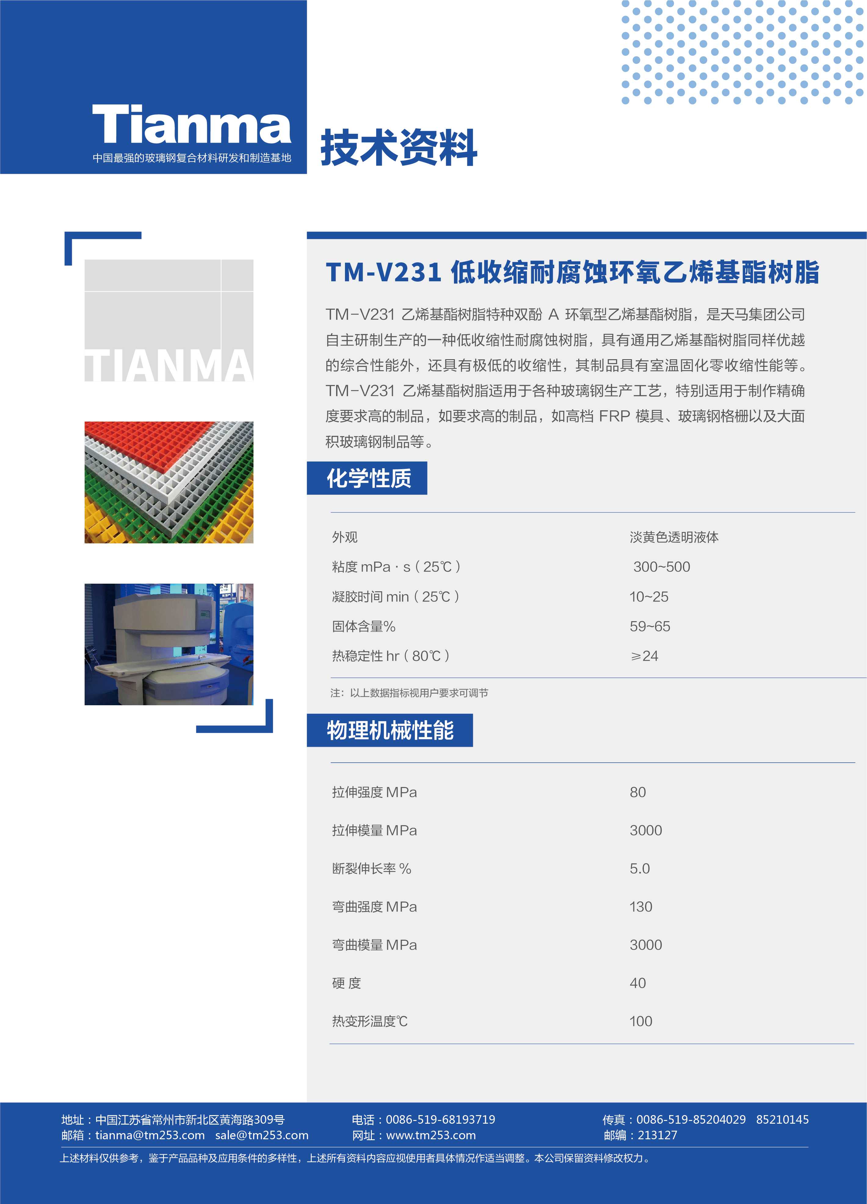 | TM-V231低收縮耐腐蝕環(huán)氧乙烯基酯樹脂 | ||||||||||