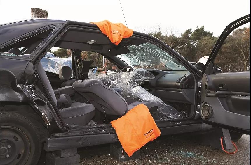以道路交通事故為例,車輛已變形,車門打不開,但所有的車窗還完好無損。那你可以選擇只破除離傷員最遠(yuǎn)的一扇車窗,來打通操作空間。接著,你可以在車窗內(nèi)和/或外貼上防碎貼膜。完成這些后,我們就可以正常地進(jìn)行救援,使用我們的液壓工具來拆卸汽車部件,而不用擔(dān)心玻璃 碎渣會(huì)四處飛濺。